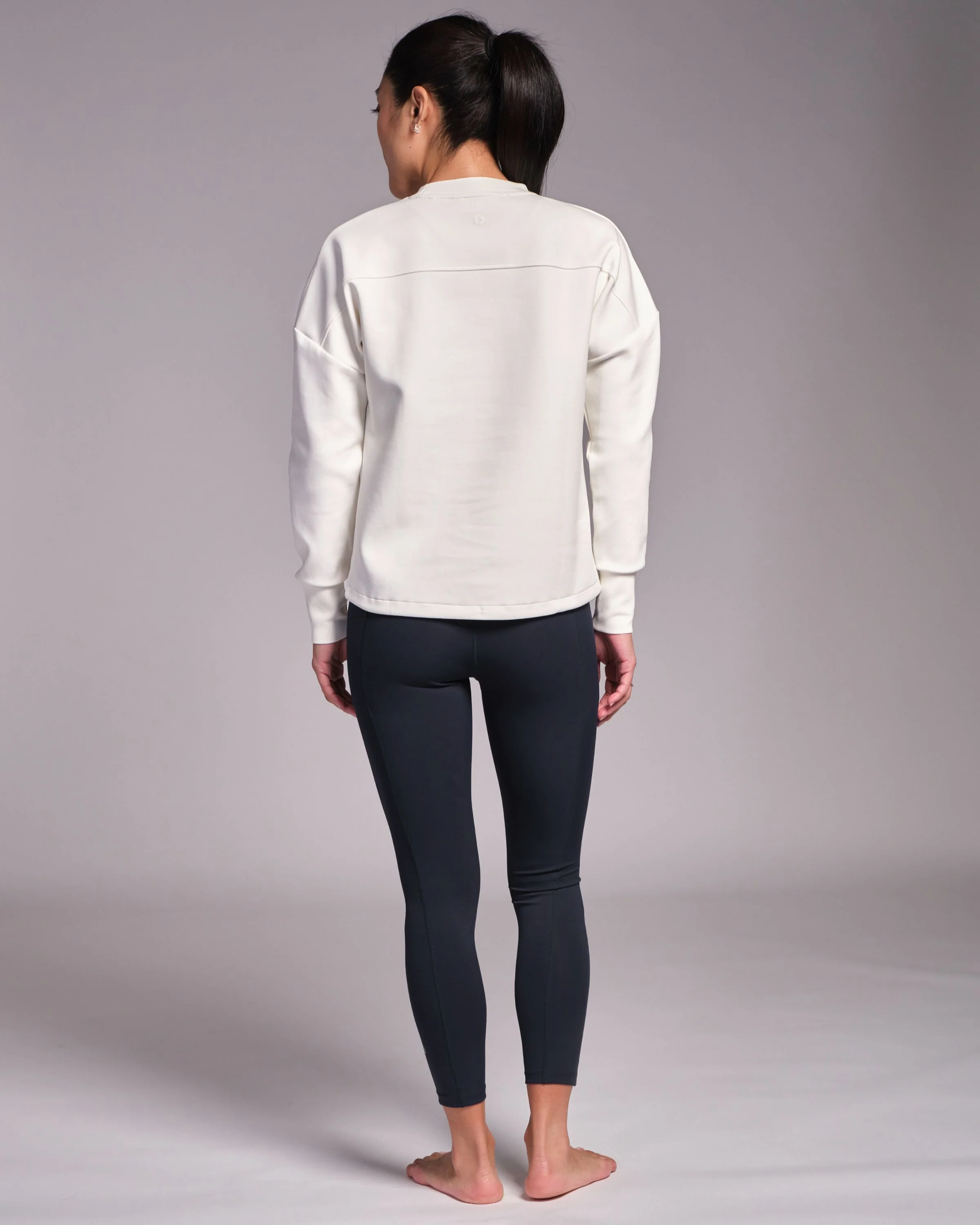 Designed with a unique neck line and dropped shoulder for an elegant silhouette, Studio Crew is luxuriously soft to the touch. We've added an adjustable drawcord too so you can wear it long or cropped, depending on what mood you're in. Before class or after class, Studio Crew is your practice companion.